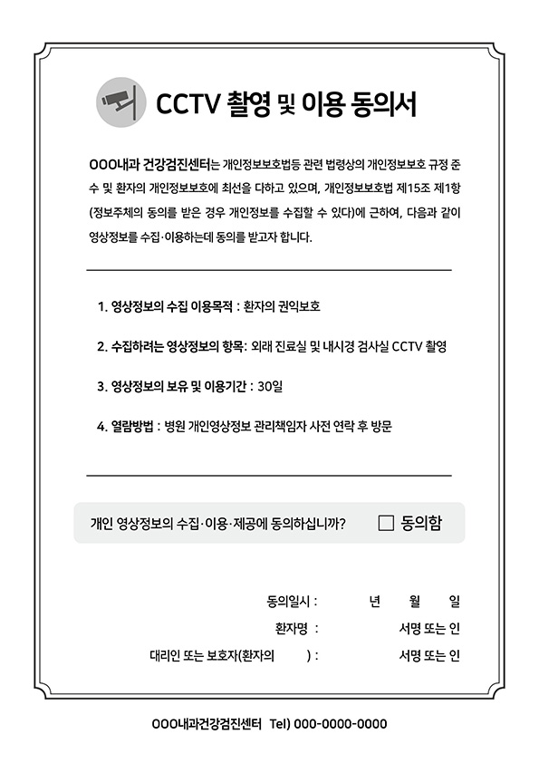 CCTV 촬영 및 이용 동의서 (흑백) 문진표(10권) 또는 낱장가능 단면 1,000장부터