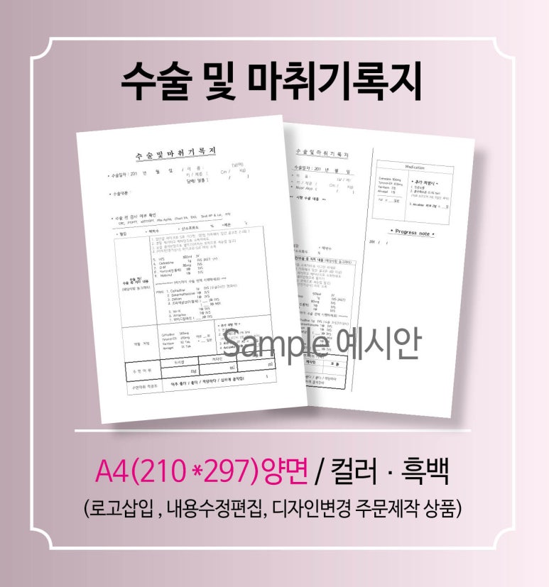 | 병원수술기록지 인쇄(A4)양면 소량가능 (0) | 2024.10.24 |