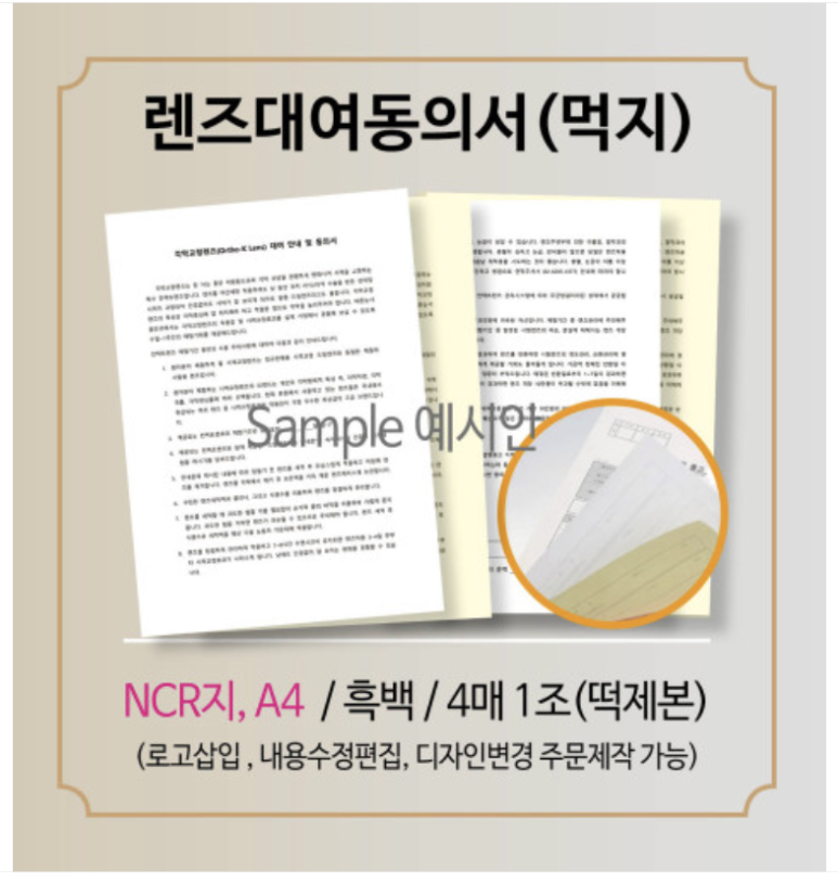 렌즈대여동의서A4 (210 X297) (떡제본)10권 / 4매 1조