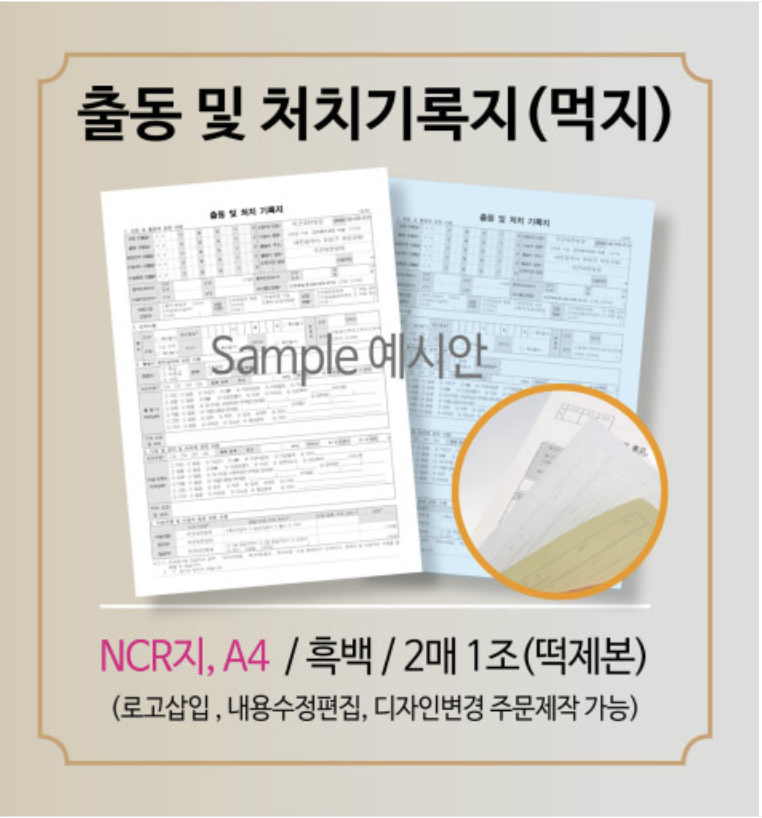 출동및처치기록지 A4 (210 X297) (떡제본)10권 /