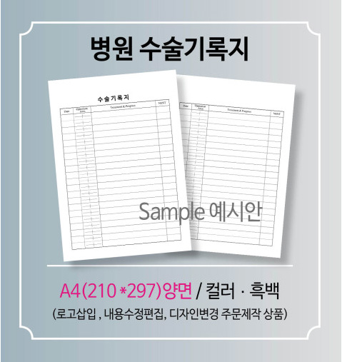 병원 수술기록지 (양면) 흑백 빠른인쇄 소량인쇄가능 [1,000장부터]