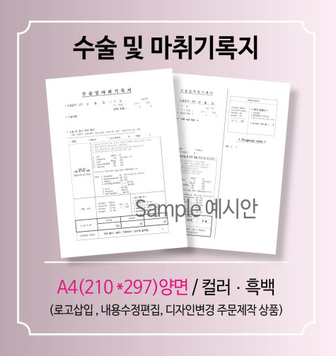 | 성형외과 수술 및 마취 기록지 (양면) 흑백 (0) | 2024.10.24 |