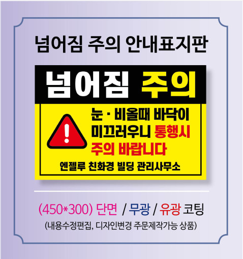 넘어짐 주의 표지판 (기본) 450*300 포맥스(플라스틱) 재질로