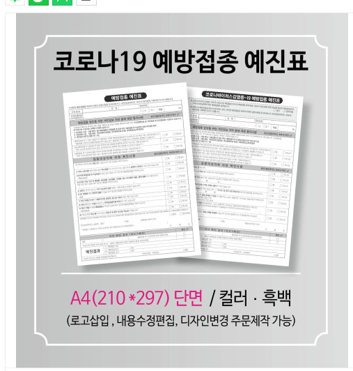 코로나19 예방접종 예진표 [단면]