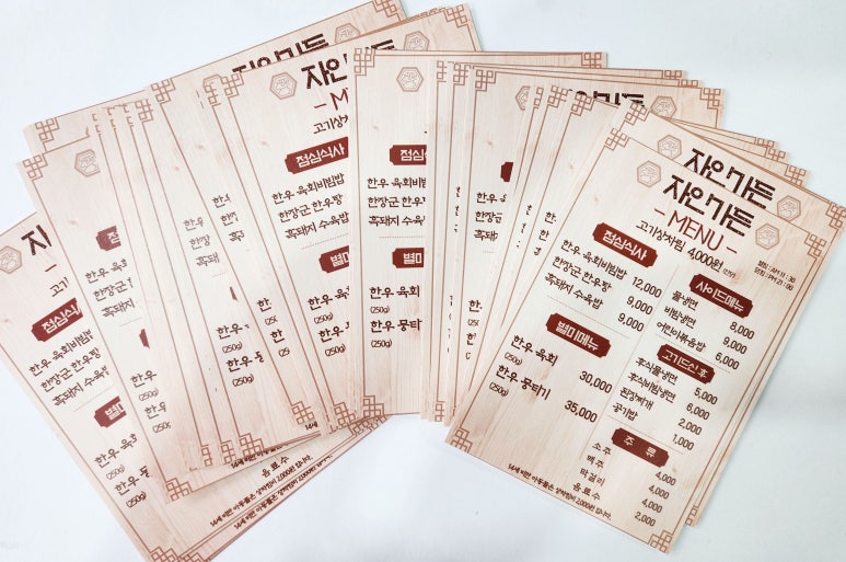 메뉴판 디자인 인쇄제작 당일프린트도하는