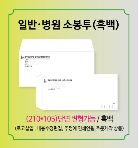 병원 기업체 소봉투 (소량가능) 흑백봉투 (단면 변형 가능) 흑백