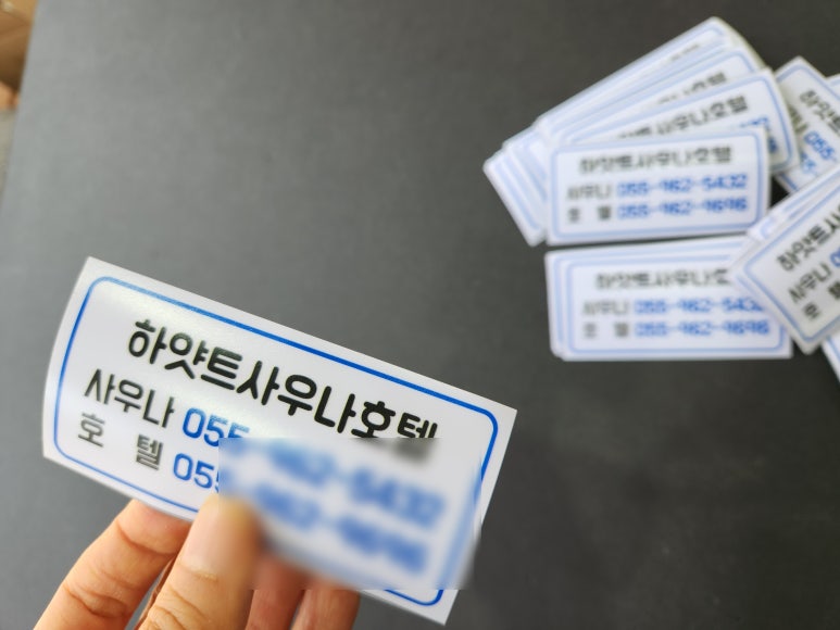 호텔업체에서 사우나 실에 부칠 스티커를 소량의뢰해 주셨습니다