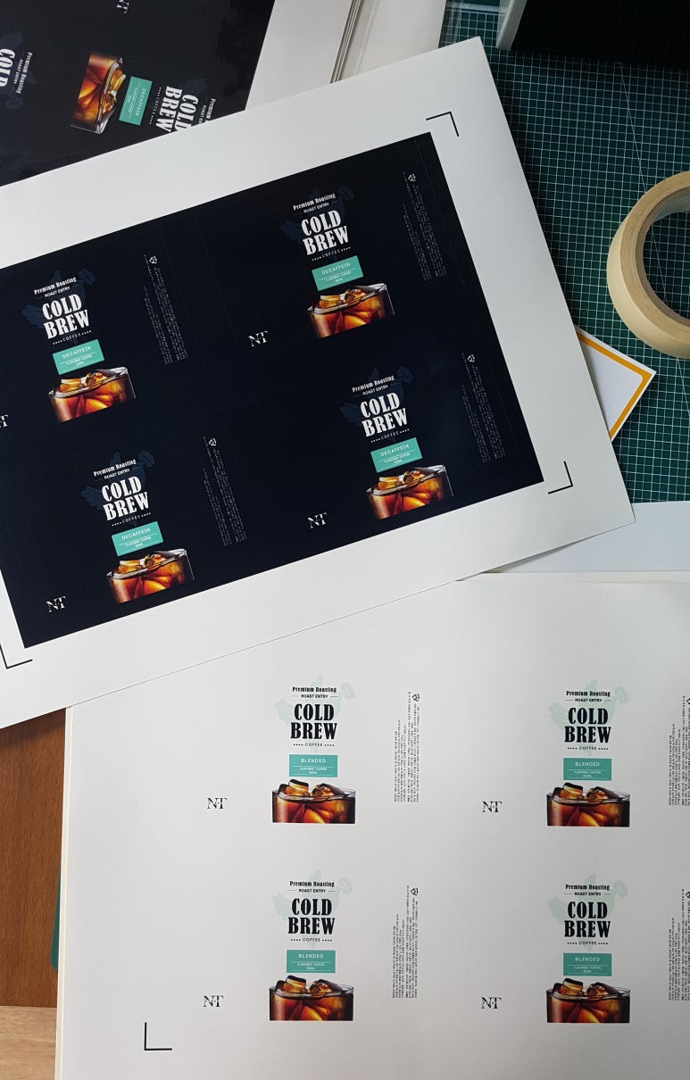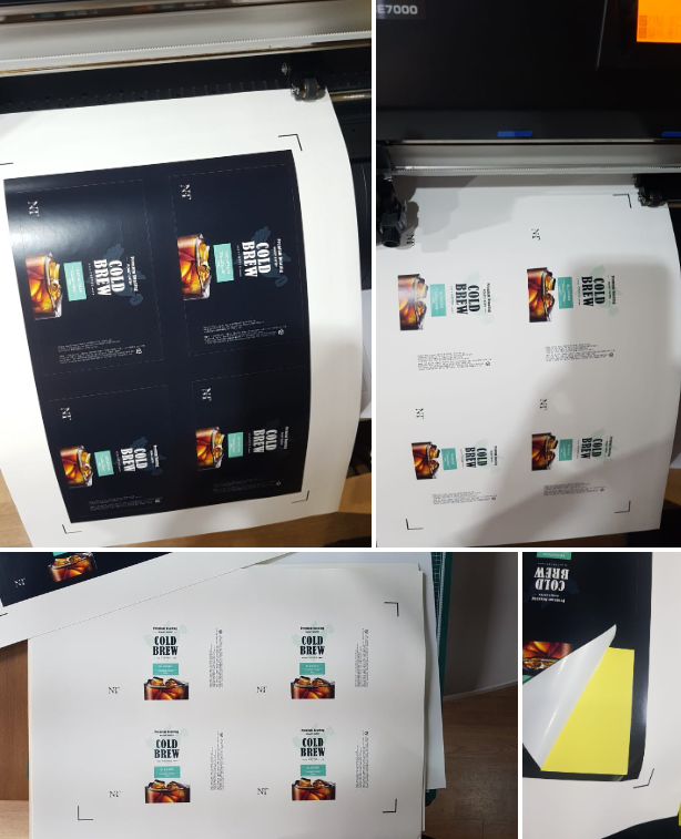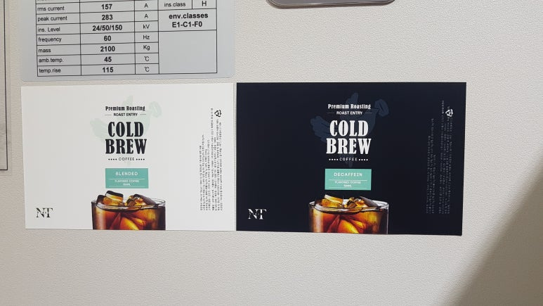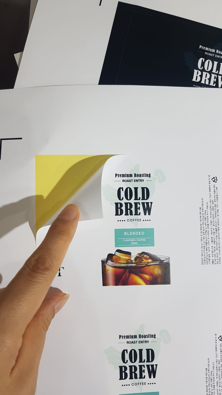 동탄에 있는 업체에서 커피용기에 붙이 패키지스티커를 유포지로 소량제작하셨습니다