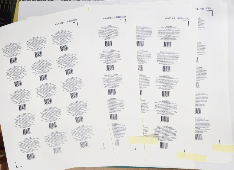 사이즈는 63*63 각 100장씩 4종류 인쇄하셨습니다