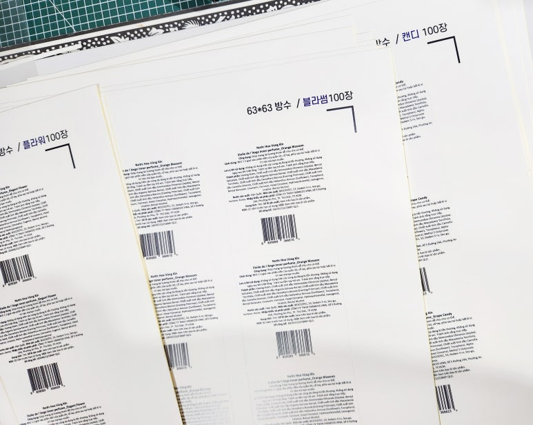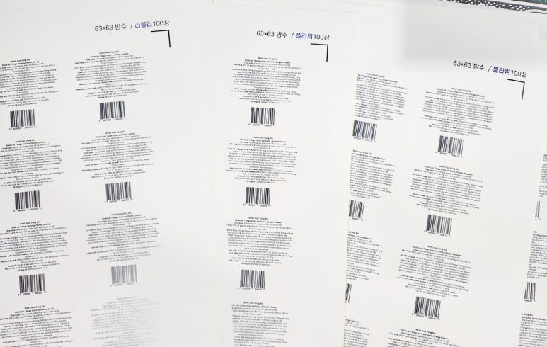 수출화장품 포장박스에 붙이는 4종 스티커를 의뢰하셨습니다^^