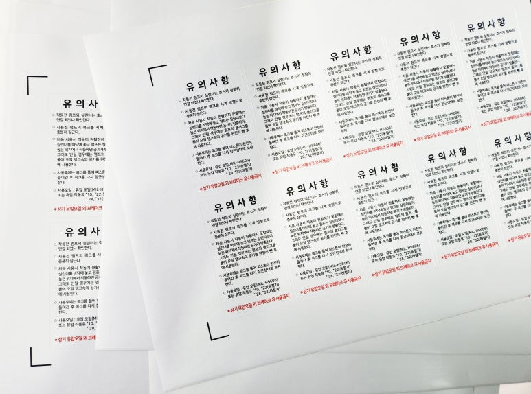 제품에 부칠 유의사항 스티커 90*150 (190장)의뢰하셨습니다