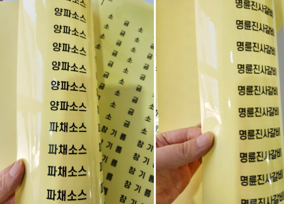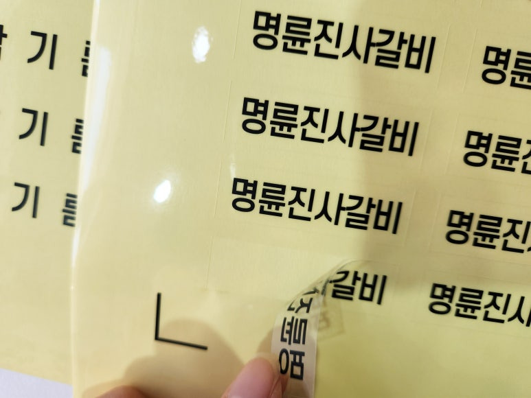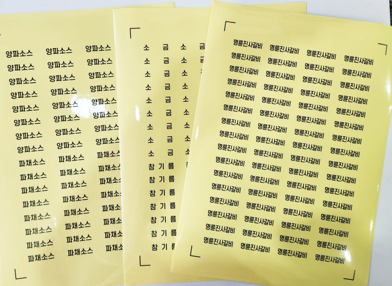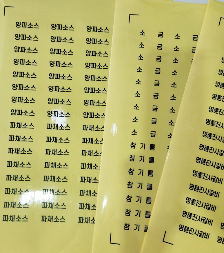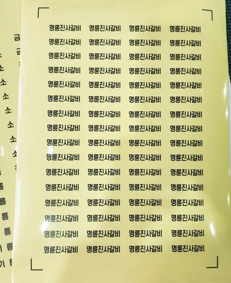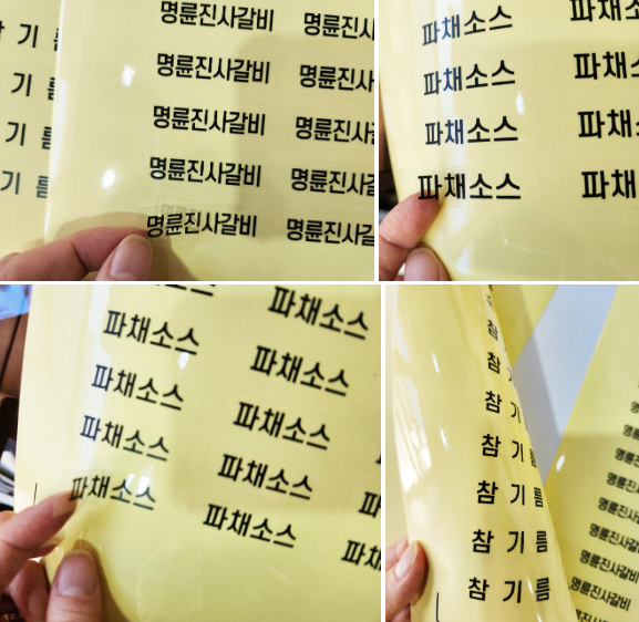 죽전에 있는 명륜진사갈비에서 양념통에 부착할 스티커를 의뢰하셨습니다