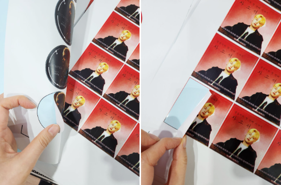 A3용지에 재단할 스티커를 안쳐서 도무송기계로 재단하는 겁니다.