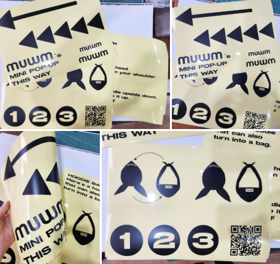 도무송작업은 필요없고 A3 크기로 투명원단에 인쇄하였습니다