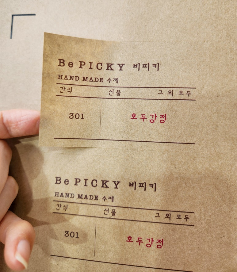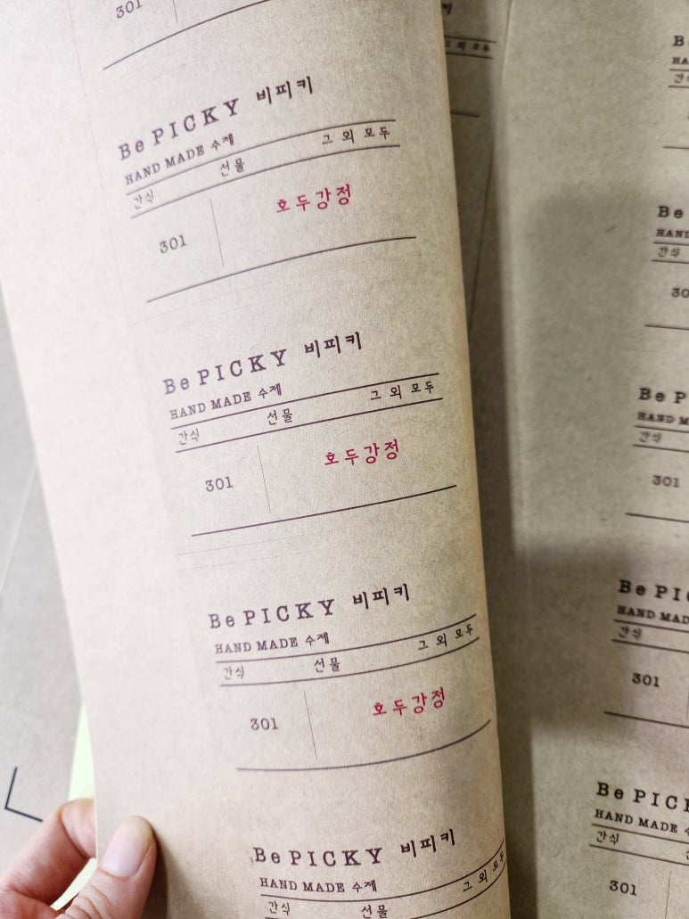 서울업체에서 호두강정에 부착할 소량스티커를 의뢰하셨습니다