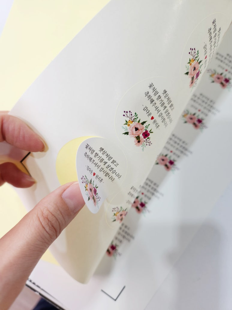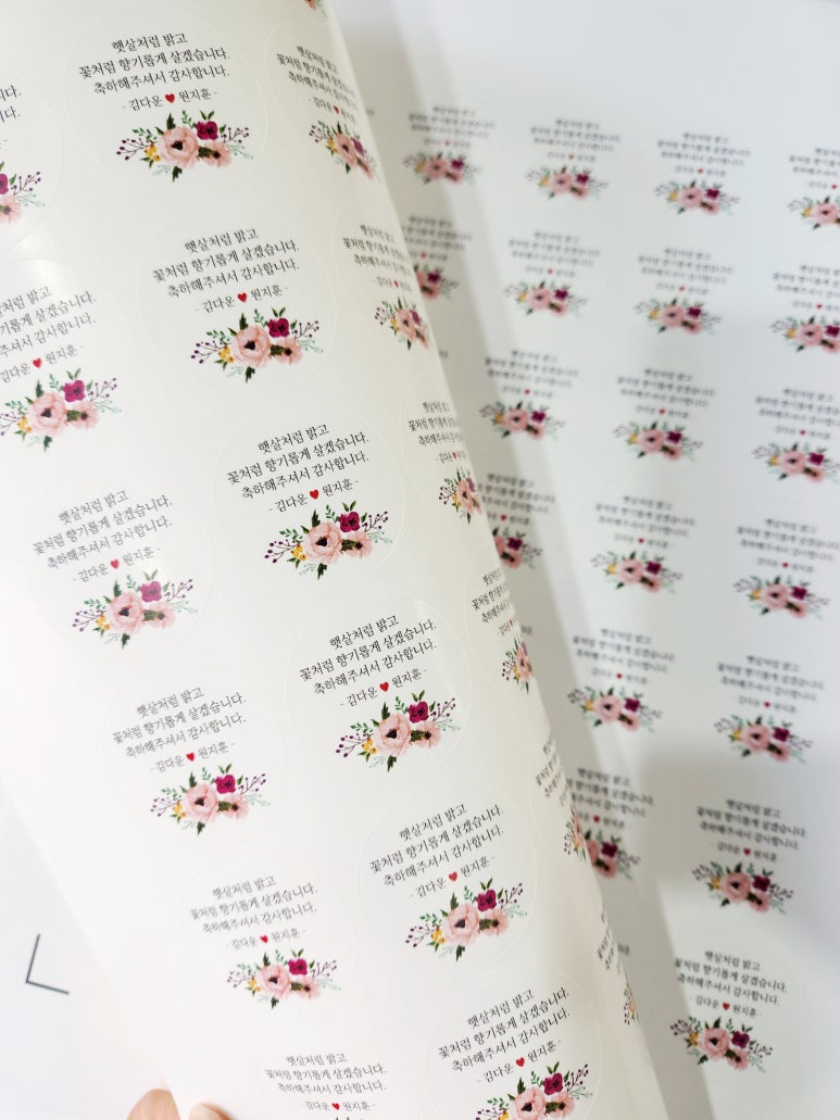 결혼후 웨딩답례품 스티커를 소량 의뢰해 주셨습니다^^