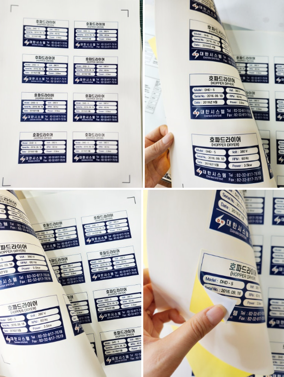 기계에 부칠 명판이랑 제품설명스티커 2종을 주문해 주셨습니다
