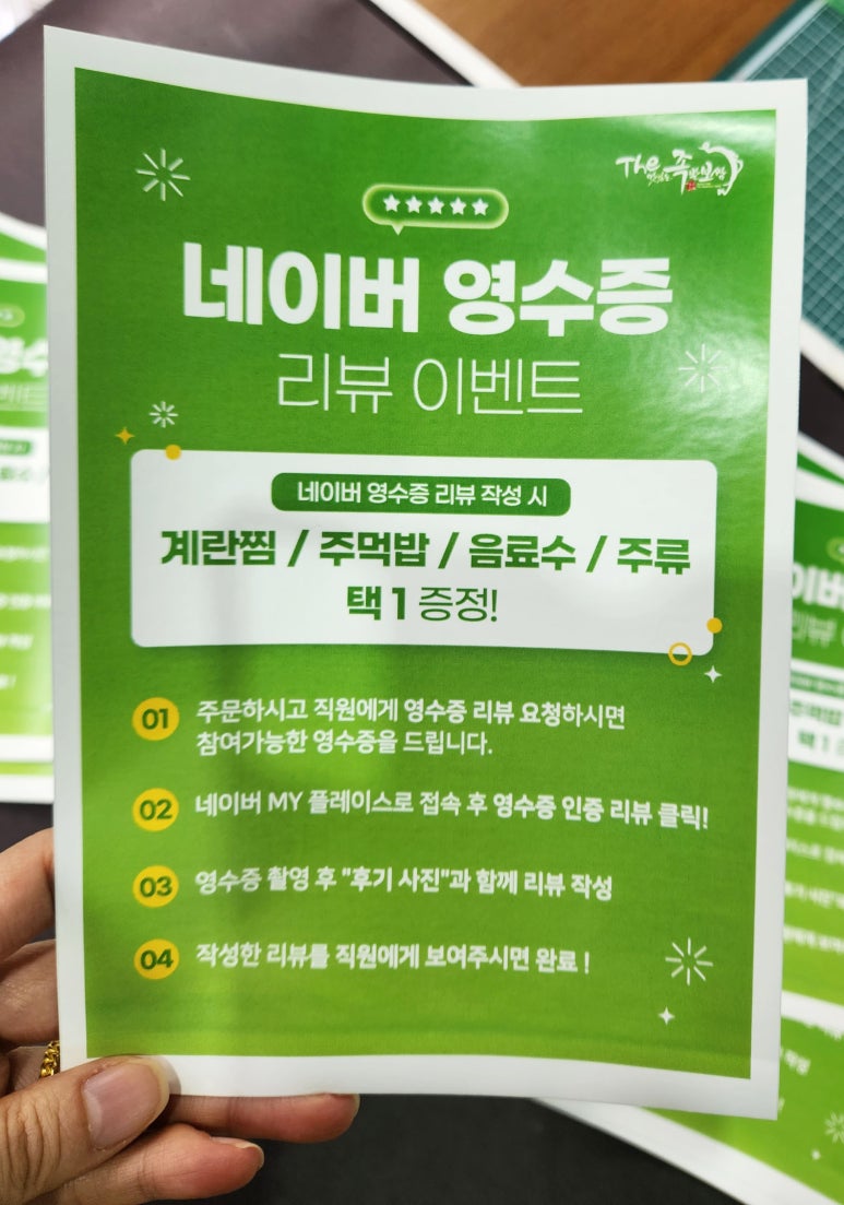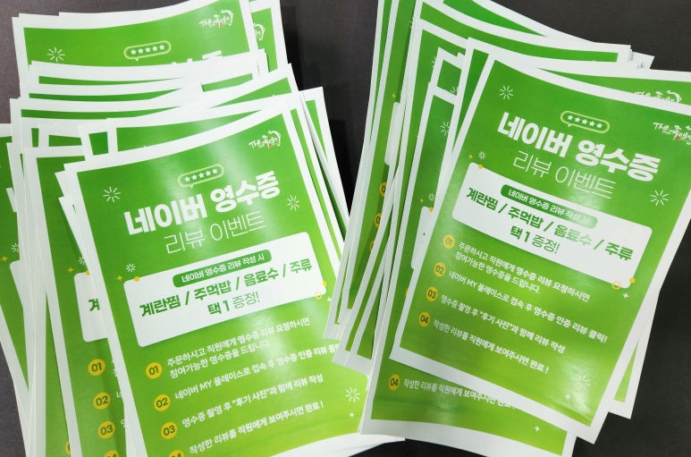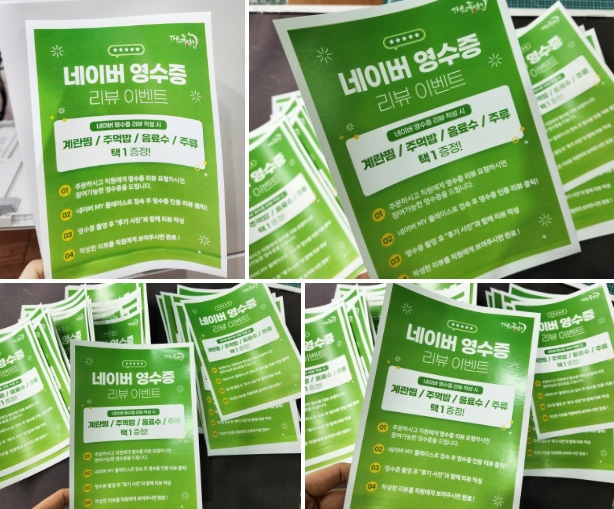 A5사이즈로 식당테이블옆에 부착용으로 소량 스티커를 의뢰하셨습니다