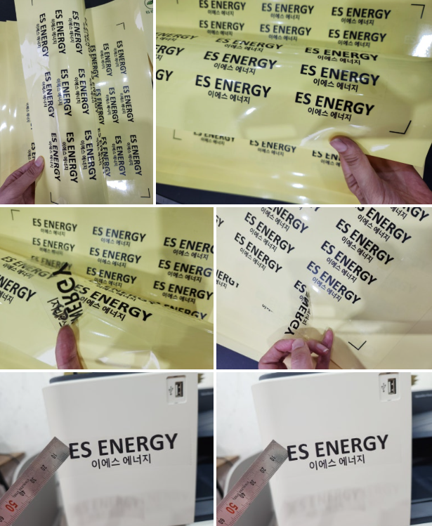 저희업체는 투명스티커는 50g을 사용하고 있습니다.