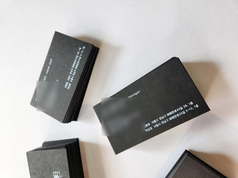 블랙명함은 300으로 두께감이 확실히 느껴지는 재질입니다^^