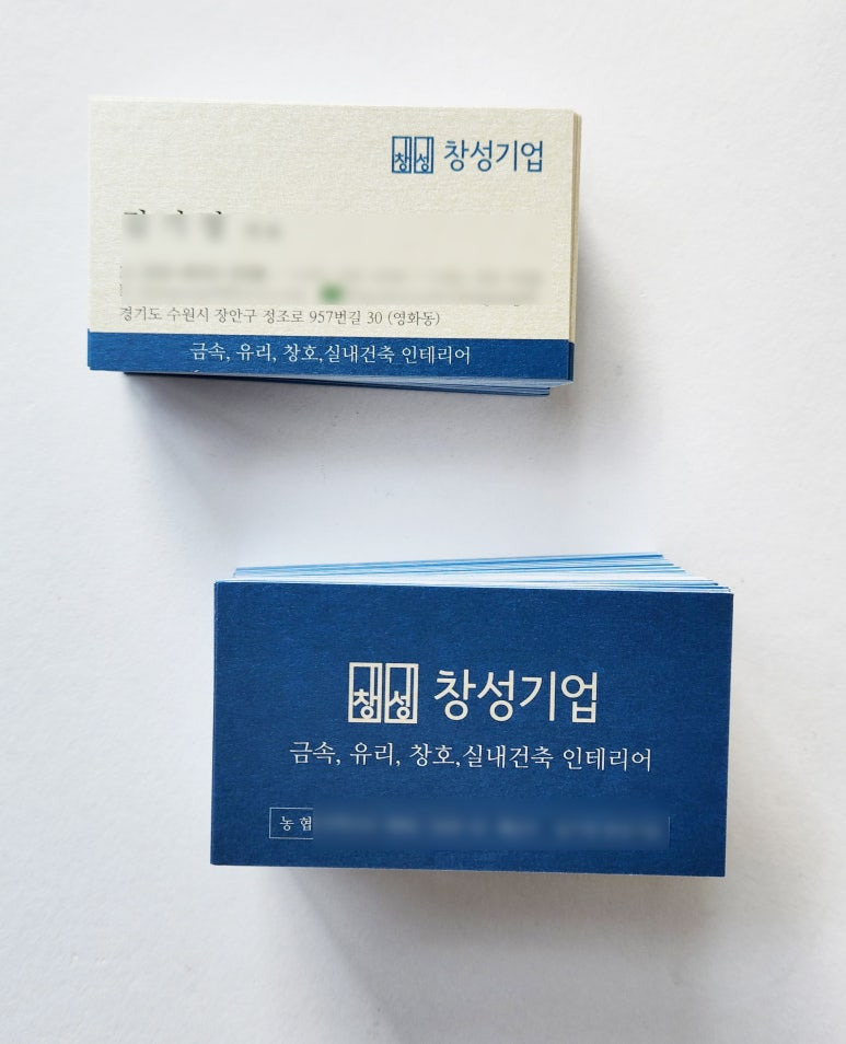 위사진처럼 샤시 창호 인테리어 전문점에서 명함의뢰하셨습니다
